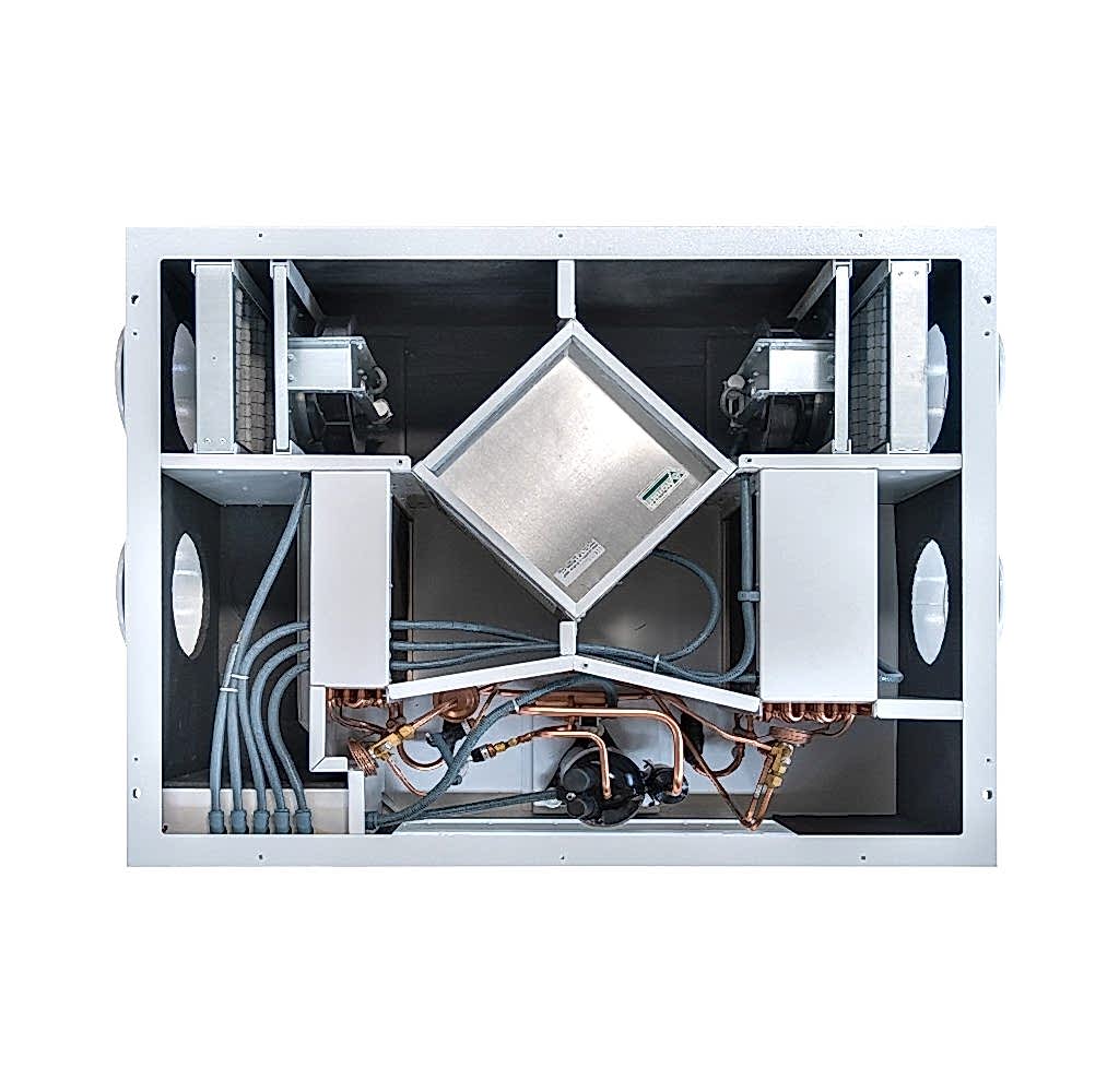 VHR DX Isı Pompalı Isı Geri Kazanım Havalandırma Üniteleri, enerji tasarrufu sağlamanın yanında, yüksek iç hava kalitesi elde etmek için dizayn edilmiştir. VHR DX üniteleri, içinde kullanılan havadan havaya ısı geri kazanım plakalı eşanjörleri ile ısı transferi yapılırken, ısı pompası sayesinde oda sıcaklığında taze hava elde edilmiş olur. Standart Isı Geri Kazanım Üniteleri'nde, ortalama olarak yaz aylarında 30°C, kış aylarında ise 12°C üfleme sıcaklığı elde edilmekte ve bu sıcaklıklar konfor açısından insanı rahatsız edebilmektedir. Isı Pompalı Isı Geri Kazanım Üniteleri'nde ise, ısı pompası sayesinde yazın 20°C, kışın 25°C taze hava üfleme sıcaklığı elde edilebilmektedir.